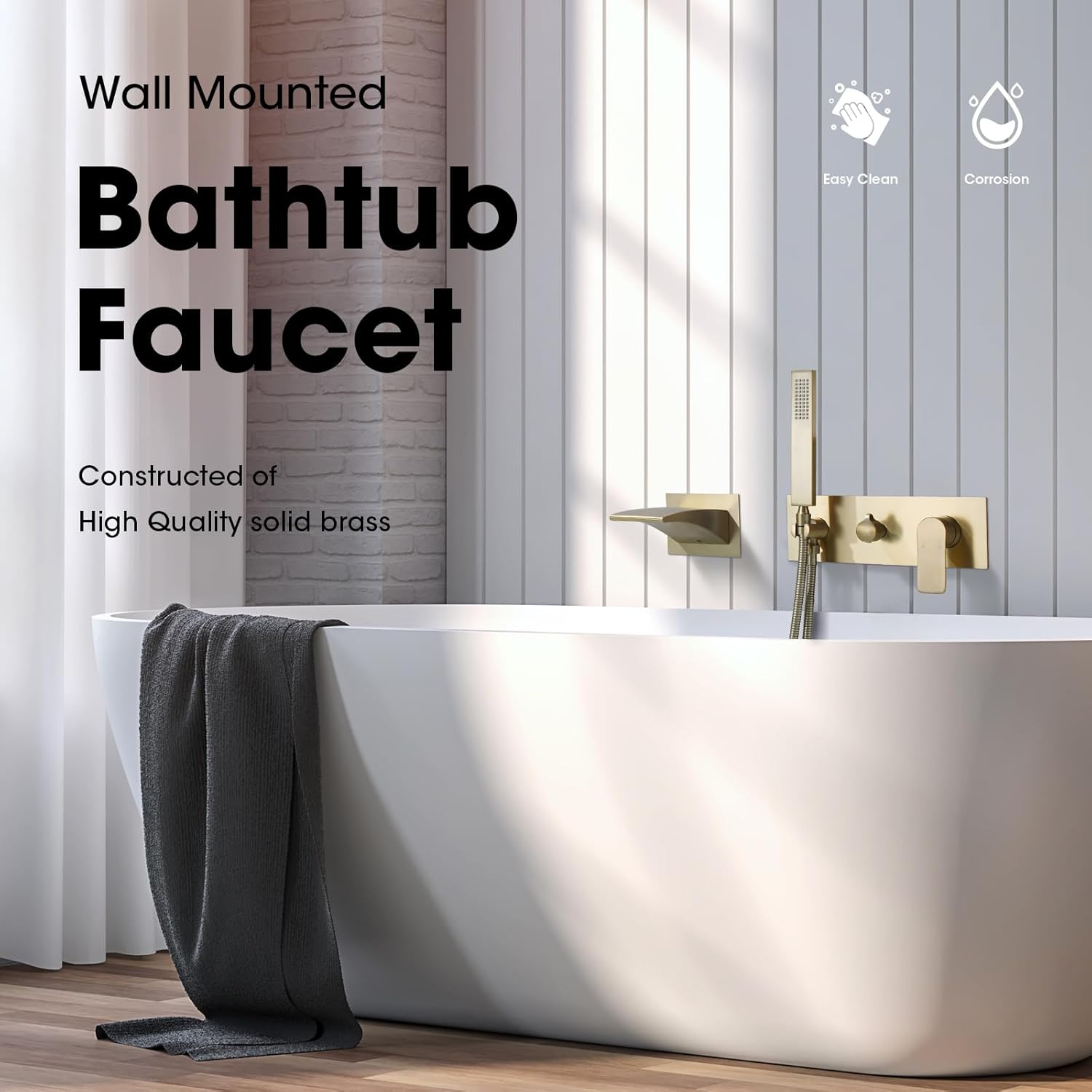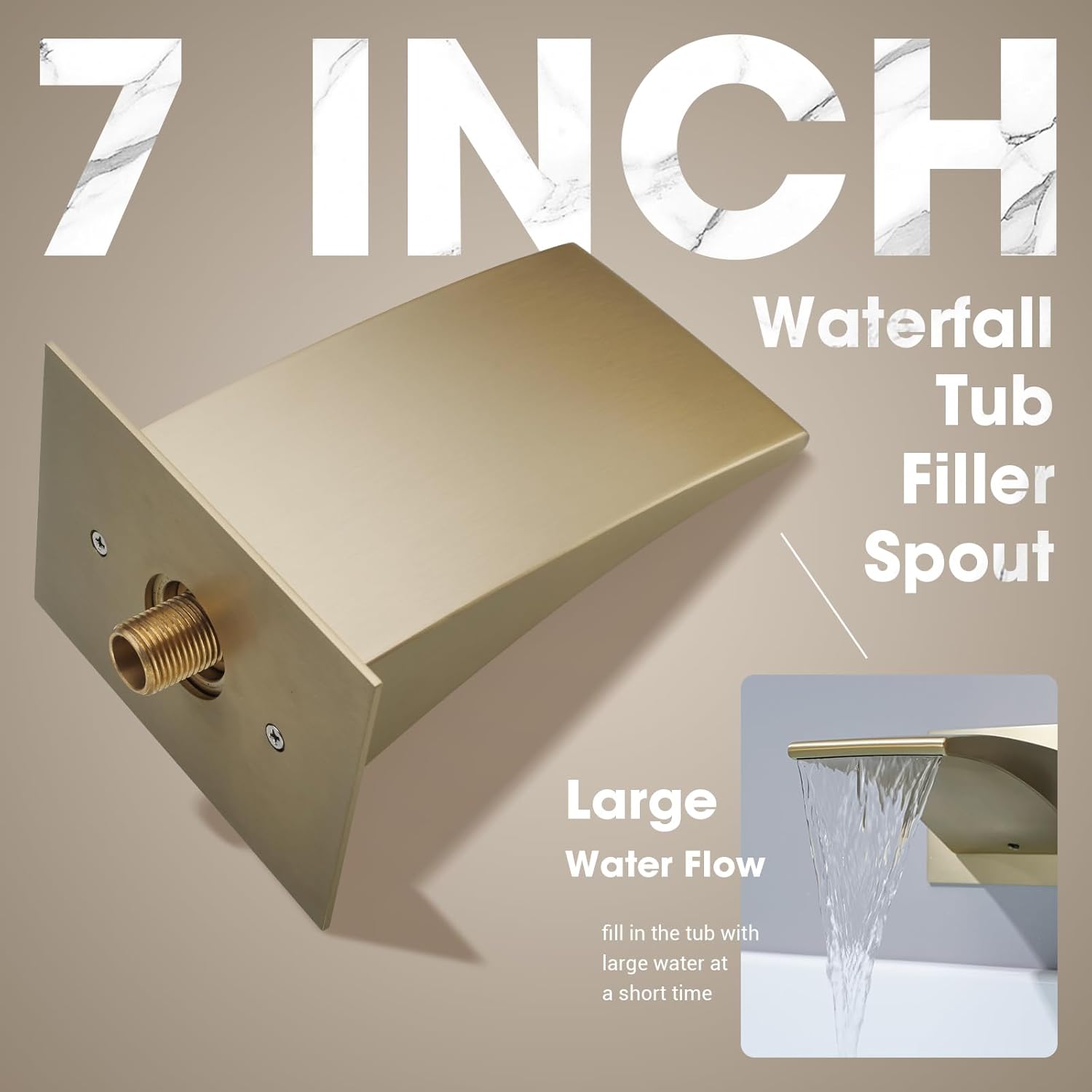 Baterie de cadă și duș din alamă de înaltă puritate, rezistentă la temperaturi ridicate și coroziune. Design cu dublu orificiu de evacuare pentru cioc cascadă și duș de mână. Finisaj Brushed Gold cu tratament anti-amprentă. Instalare pe conducte standard britanice, cu instrucțiuni incluse.