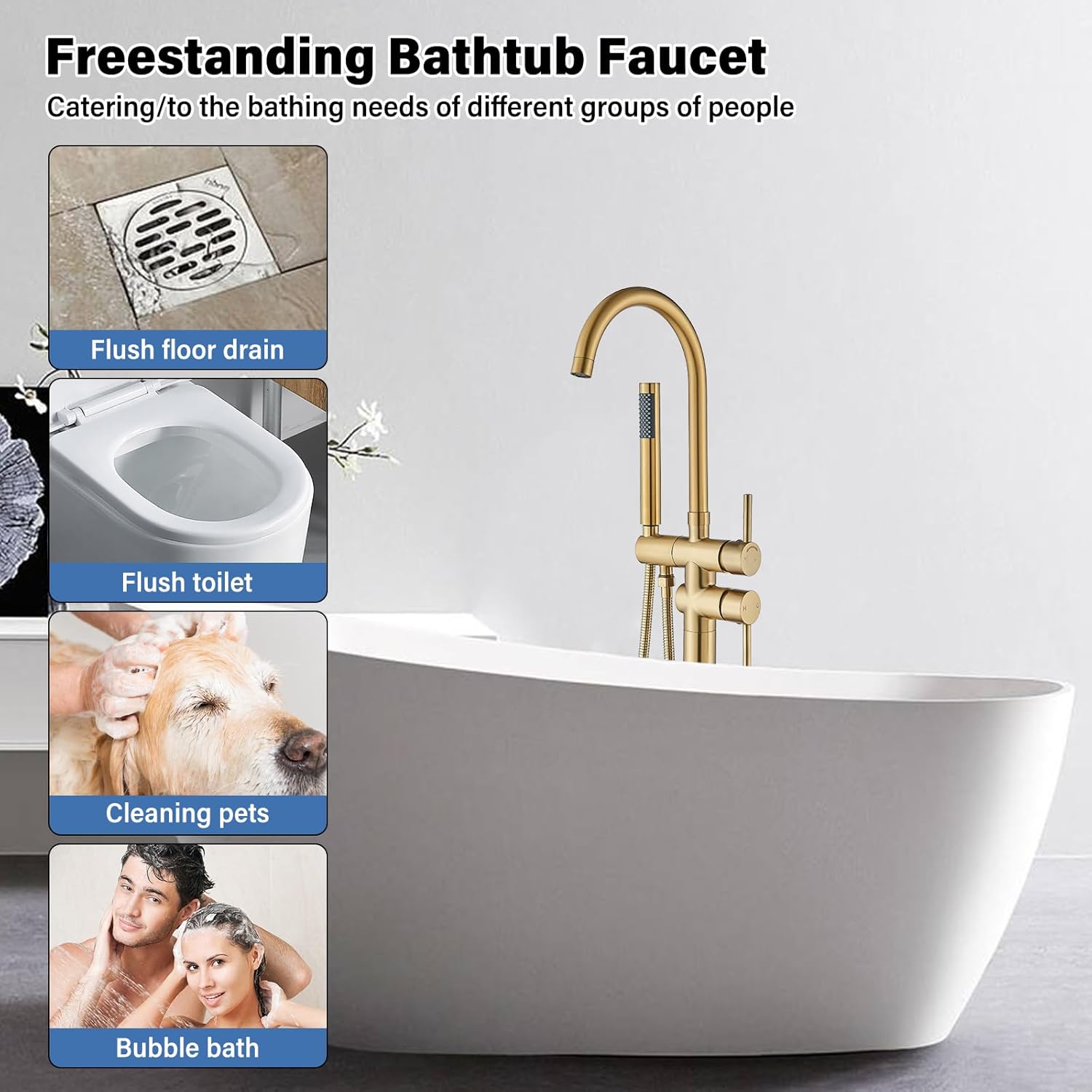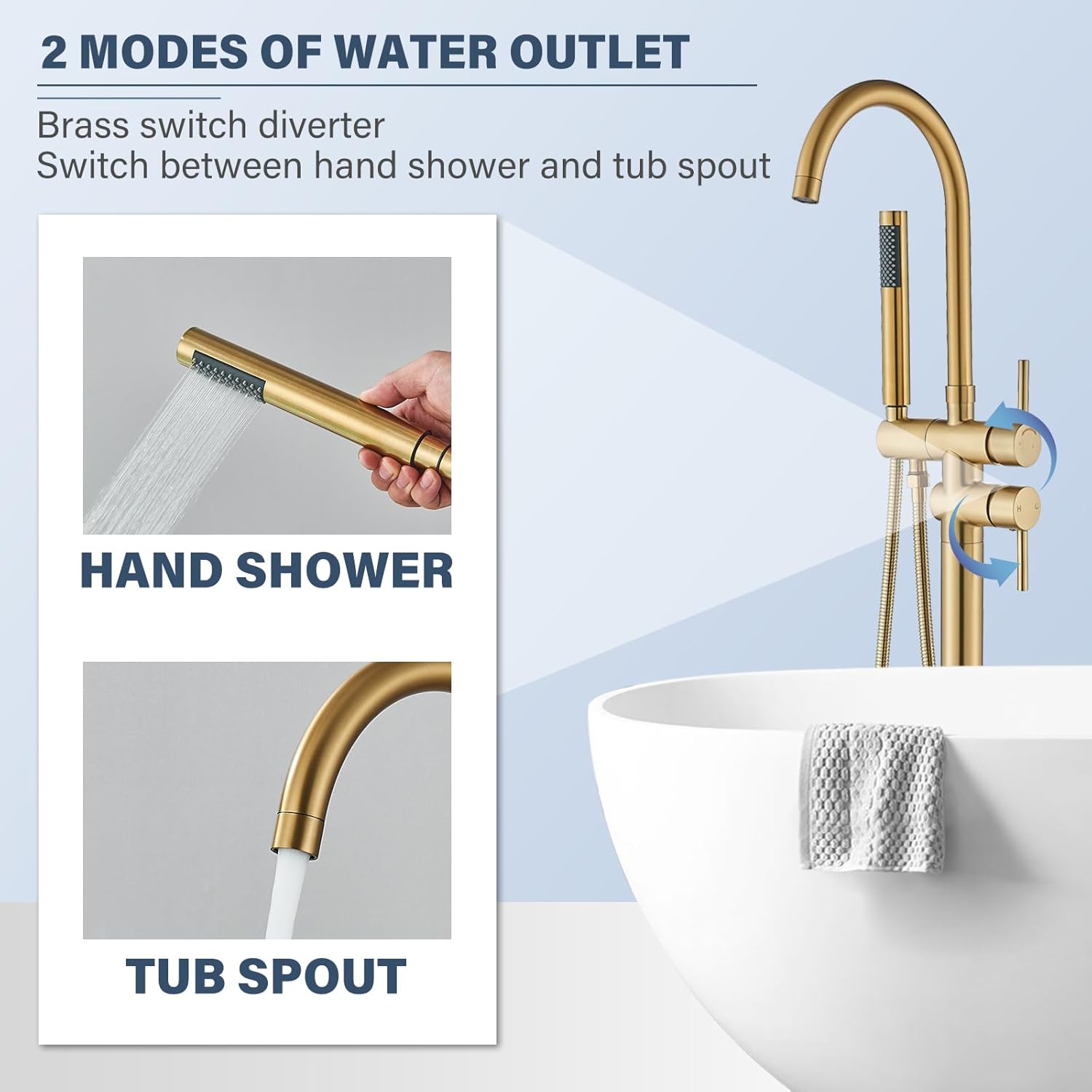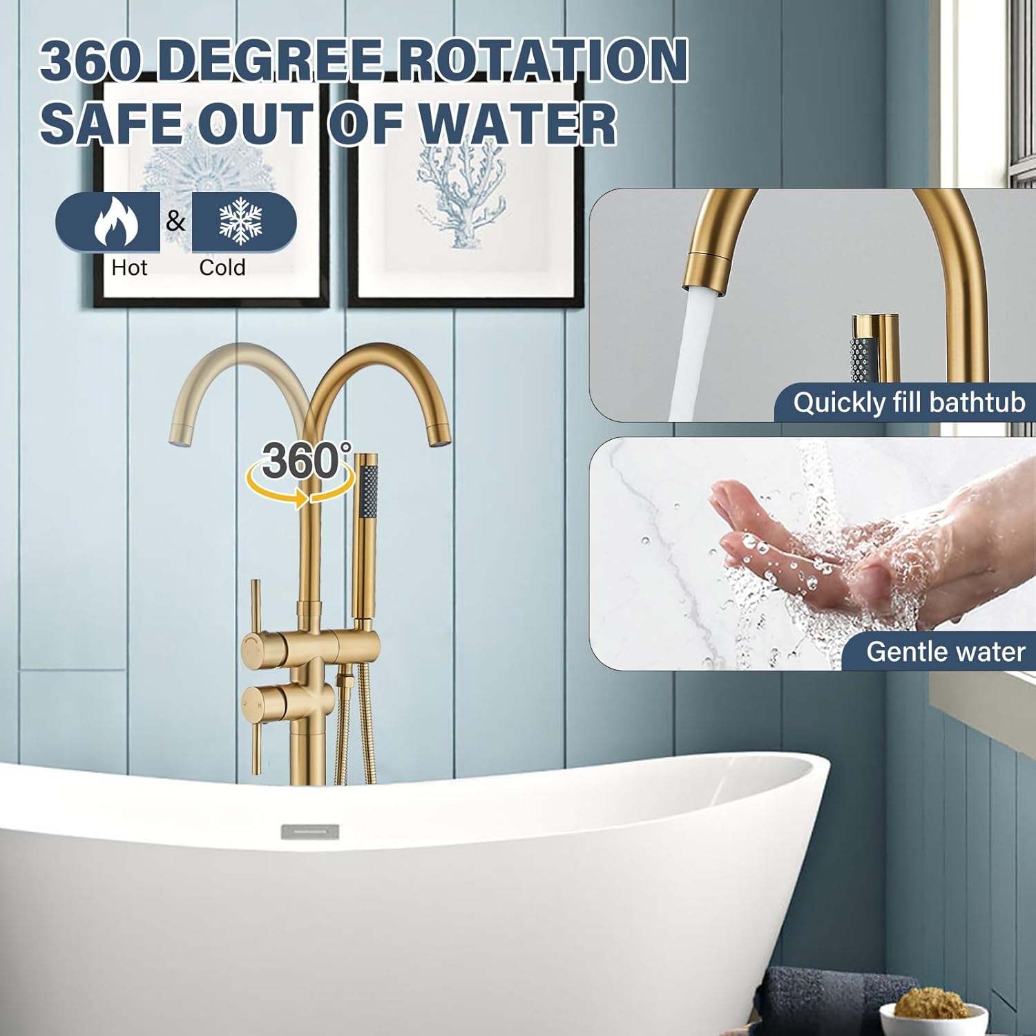 Bateria pentru cadă freestanding YAGATAP este realizată din alamă solidă de înaltă calitate. Finisajul brushed gold oferă un aspect modern și elegant în baie.