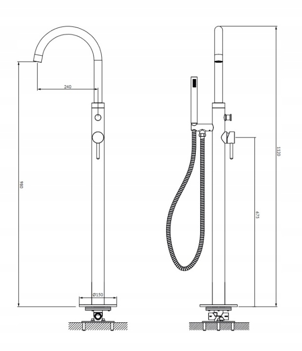 Produsul are o lungime a pipei de 24,3 cm, înălțimea jetului de apă de 98 cm și înălțimea totală de 112 cm. Este prevăzut cu pară de duș din alamă, cu o singură funcție, suport pentru pară cu inserție de protecție și furtun de duș cu înveliș din alamă, cu lungimea de 150 cm.