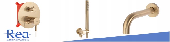 Baterie de cadă încastrată REA Lungo, auriu periat, cu BOX