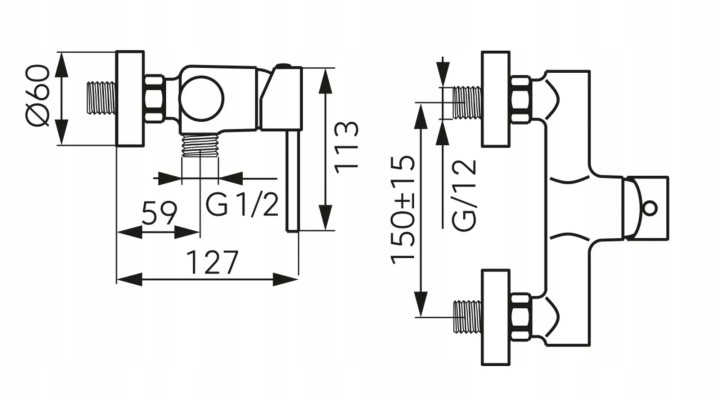 Produsul este echipat cu regulator ceramic, iar conexiunea se realizează prin racord excentric G1/2. Distanța dintre racorduri este de 150 ± 20 mm, iar înălțimea bateriei este de 113 mm. Pachetul conține bateria de duș.