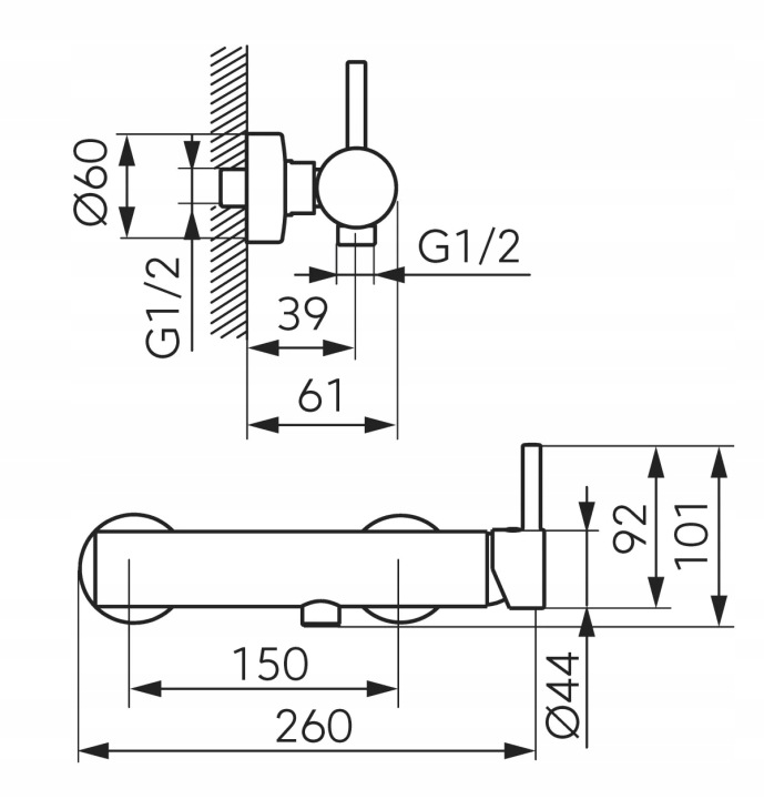 Corpul bateriei este realizat din alamă, iar para de duș are lungimea de 220 mm. Bateria are înălțimea de 101 mm, adâncimea de 61 mm și lățimea de 260 mm. Modelul se încadrează în grupa acustică II și în clasa de debit A. Produsul nu include pipă, această caracteristică nefiind aplicabilă acestui tip de baterie.