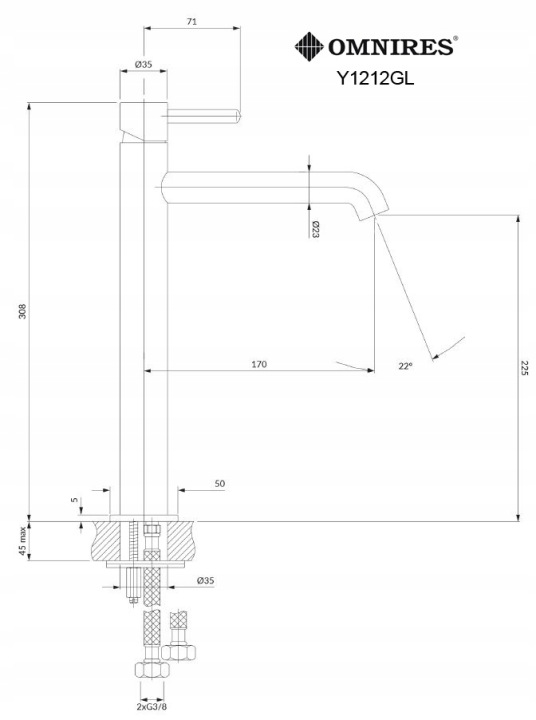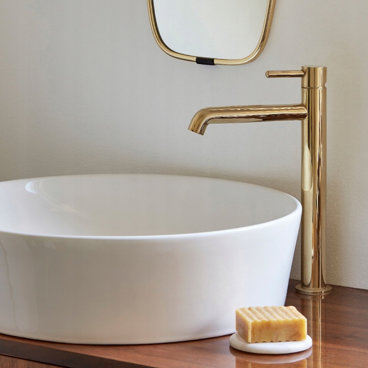 OMNIRES Y Y1212GL este o baterie înaltă pentru lavoar pe blat, concepută pentru amenajări elegante și echilibrate vizual. Face parte din colecția OMNIRES Y, remarcată prin linia sa curată, forma impecabilă și designul inspirat de cerc, într-o expresie atemporală a minimalismului.