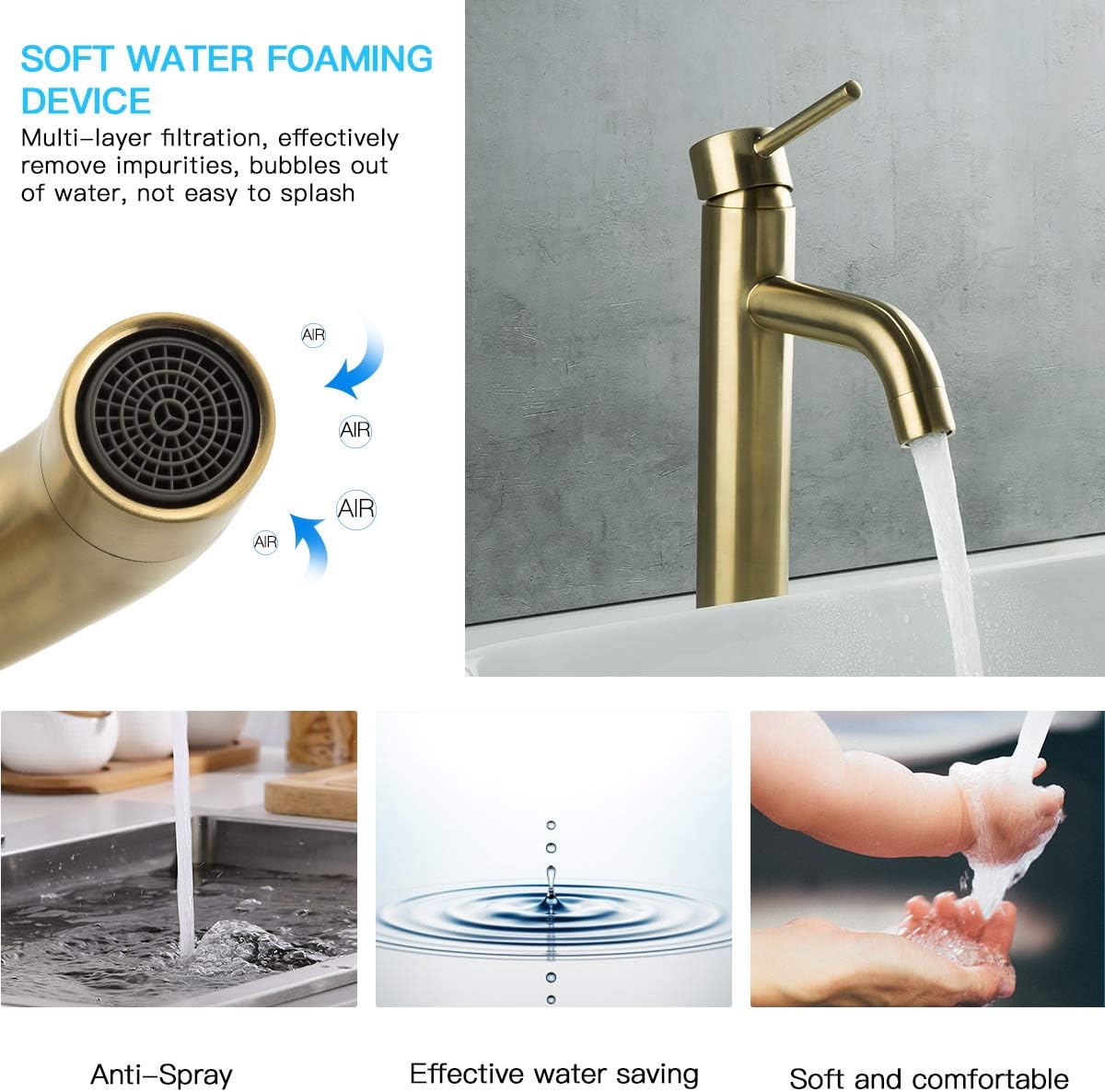 Finisajul brushed gold oferă protecție foarte rezistentă la coroziune, pătare și zgârieturi. Textura netedă asigură o senzație plăcută la atingere.