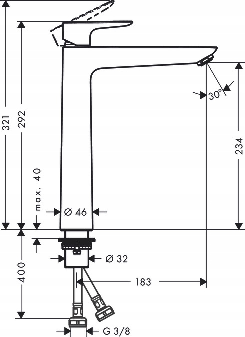 Produsul include o baterie monocomandă pentru lavoar și un set de scurgere cu tijă de acționare G 1¼. Dispune de zona de confort ComfortZone 240, proiecție de 183 mm și înălțimea pipei de 234 mm. Oferă jet normal, debit maxim de 5 l/min la 3 bari, cartuș ceramic și conexiuni G ⅜, fiind potrivită și pentru încălzitoare instantanee de apă.