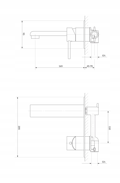 Rozeta are dimensiunile de 20,5 x 9,5 cm, iar lungimea pipei măsurată de la suprafața plăcilor este de 16,5 cm. Produsul necesită o adâncime minimă de instalare de 6 cm, iar elementul pentru montaj încastrat este inclus.