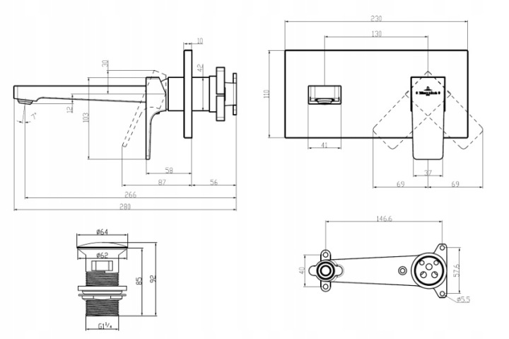 Produsul include un ventil de scurgere tip push-open, iar debitul apei la o presiune de 3 bari este de 4,6 l/min. Lungimea pipei este de 147 mm, iar bateria nu este prevăzută cu termostat. Pentru instalare este necesar elementul încastrat TVW00015200000, care se comandă separat.