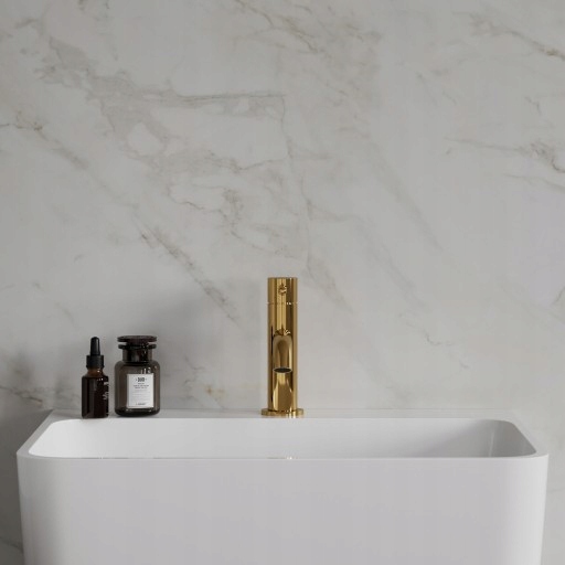 Bateria este realizată din alamă de înaltă calitate și are un finisaj auriu lucios, într-o nuanță luminoasă și elegantă. Suprafața perfect netedă și strălucitoare este obținută prin tehnologia PVD, iar produsul beneficiază de garanție pentru o perioadă de 5 ani.