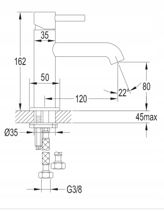 Modelul are o proiecție a pipei de 12 cm, înălțimea jetului de apă de 8 cm și înălțimea totală de 16,2 cm. Este echipat cu un cartuș ceramic de 25 mm, proiectat pentru utilizare confortabilă, iar soluțiile tehnologice integrate contribuie la reducerea consumului de apă cu până la jumătate.