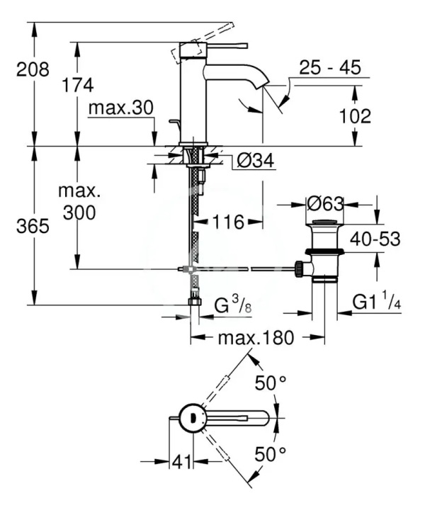 GROHE Essence este o baterie pentru lavoar cu montaj orizontal, concepută pentru utilizare în baie. Modelul are un singur mâner și un singur orificiu de montaj, oferind control pentru apă rece și caldă într-o formă practică și clar definită.