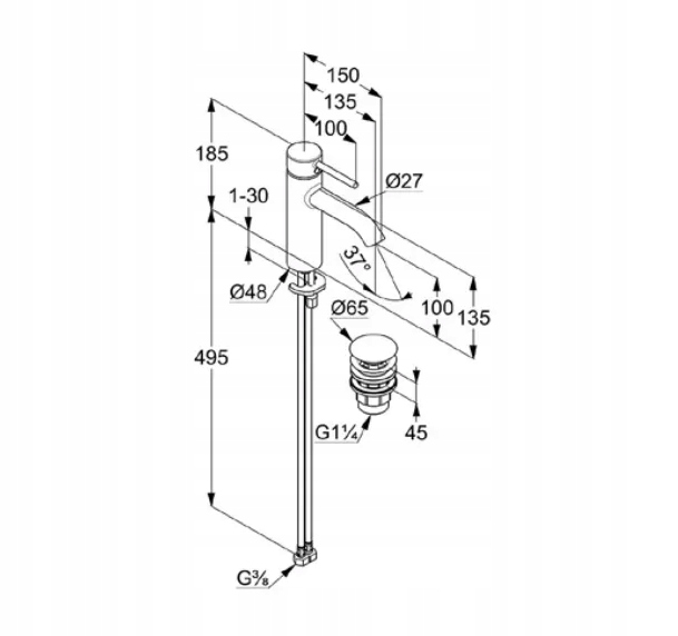 KLUDI BOZZ este o baterie stativă pentru lavoar, concepută pentru montaj pe un singur orificiu. Modelul este prevăzut cu comandă monocomandă și mâner drept, fiind potrivit pentru amenajări de baie cu aspect elegant și bine definit.