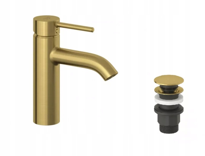 Finisajul auriu periat evidențiază linia seriei BOZZ, iar înălțimea pipei de 100 mm completează configurația tehnică prezentată pentru acest model cu dop click-clack.