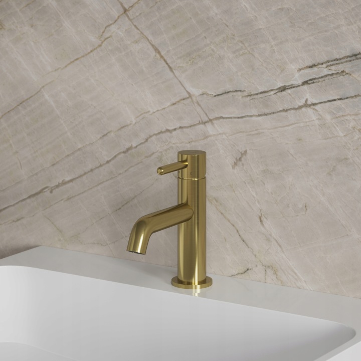 Finisajul în nuanța de alamă periată are tonul unui auriu rece și o suprafață satinată, periată. Acest aspect rafinat este obținut prin tehnologia avansată PVD. Designul poartă semnătura lui Janusz Langner, Studio OMNIRES.