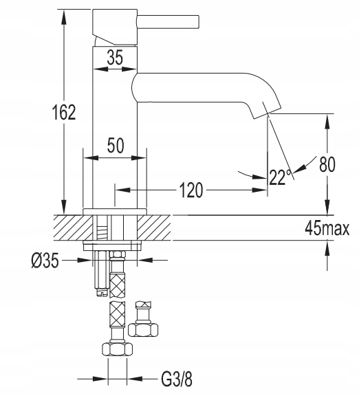 Produsul este realizat din alamă de înaltă calitate și este echipat cu un cartuș ceramic de cea mai bună calitate, cu diametrul de 25 mm. Bateria are o lungime a pipei de 12 cm, înălțimea jetului de apă este de 8 cm, iar înălțimea totală ajunge la 16,2 cm. Soluțiile tehnologice utilizate contribuie la reducerea consumului de apă la jumătate și asigură un confort ridicat în utilizare.