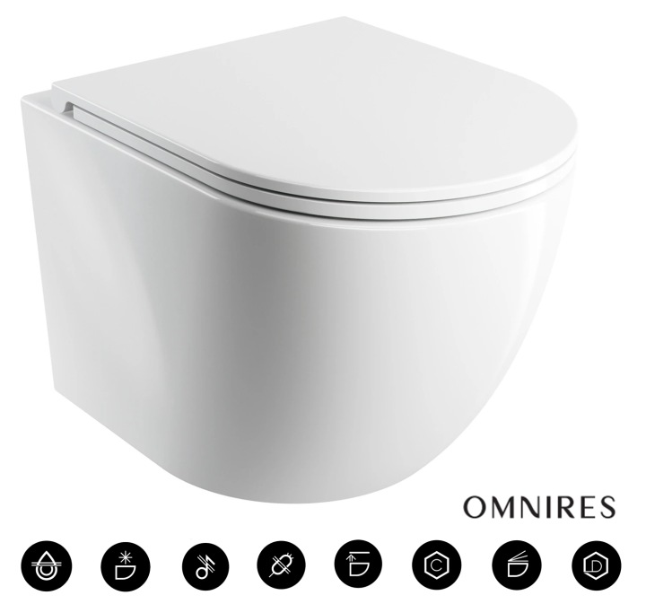 Pachetul conține cadrul încastrat GROHE 38528001, vasul suspendat Omnires Ottawa OTTAWASPMWBP SILENT POWER împreună cu capac cu închidere lentă, clapeta de acționare GROHE Skate Cosmopolitan S în finisaj auriu periat brushed cool sunrise 37624GN0, cutia de vizitare pentru butoane mici 40911000, colțarul GROHE 3855800M și salteaua fonoizolantă pentru WC GROHE 37131000. Setul include de asemenea elementele de fixare, doi suporți pentru vasul WC, cot de evacuare din polietilenă Ø 90 mm, piesă de reducție Ø 90/110 mm și setul de alimentare și evacuare.