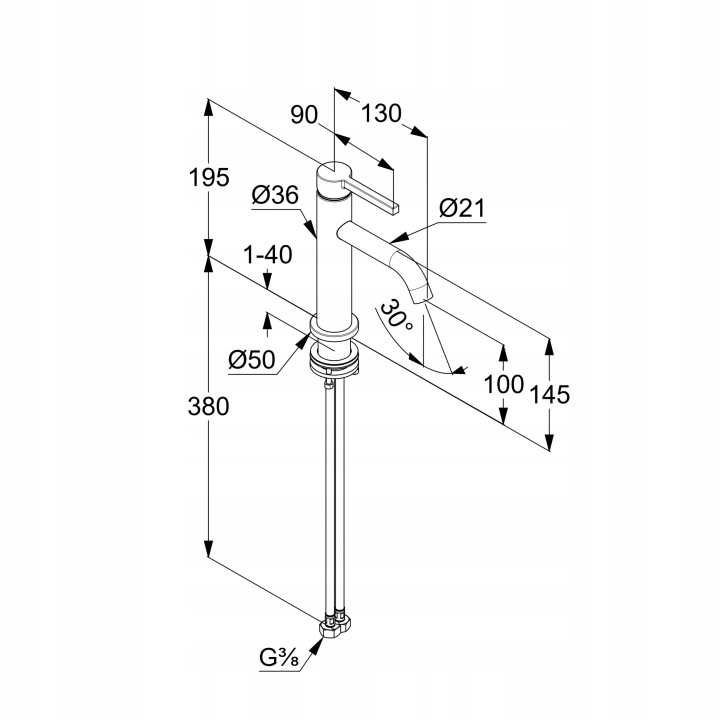 KLUDI NOVA FONTE 100 este o baterie pentru lavoar cu comandă monocomandă, concepută pentru montaj pe un singur orificiu. Modelul are mâner drept și este realizat pentru utilizare practică și integrare armonioasă în zona lavoarului.