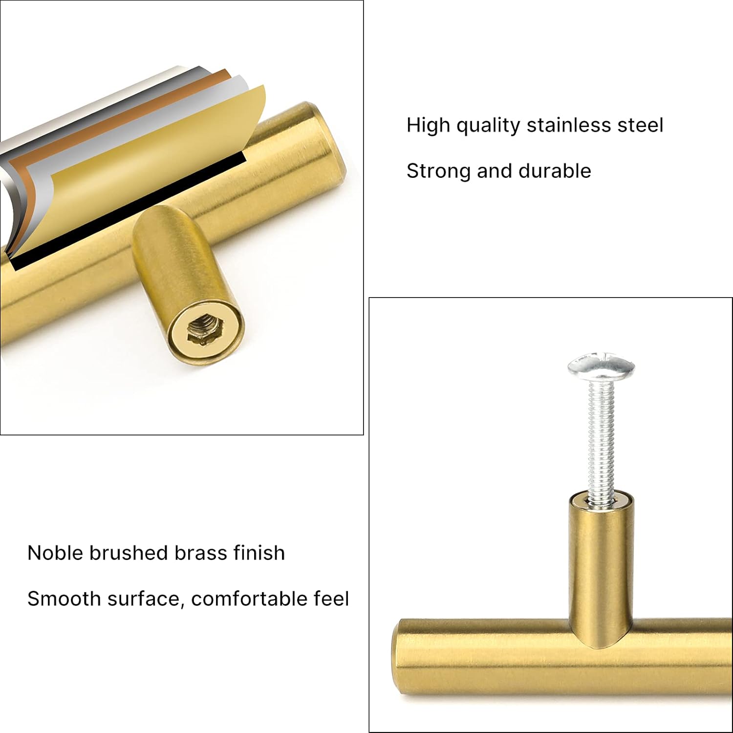 Mânerele LONTAN din oțel inoxidabil au finisaj brushed brass elegant. Sunt durabile și potrivite pentru bucătărie, baie sau dulapuri. Disponibile în mai multe dimensiuni până la 256mm. Fiecare mâner este ambalat individual și include șuruburi de 25mm și 45mm pentru montaj simplu.