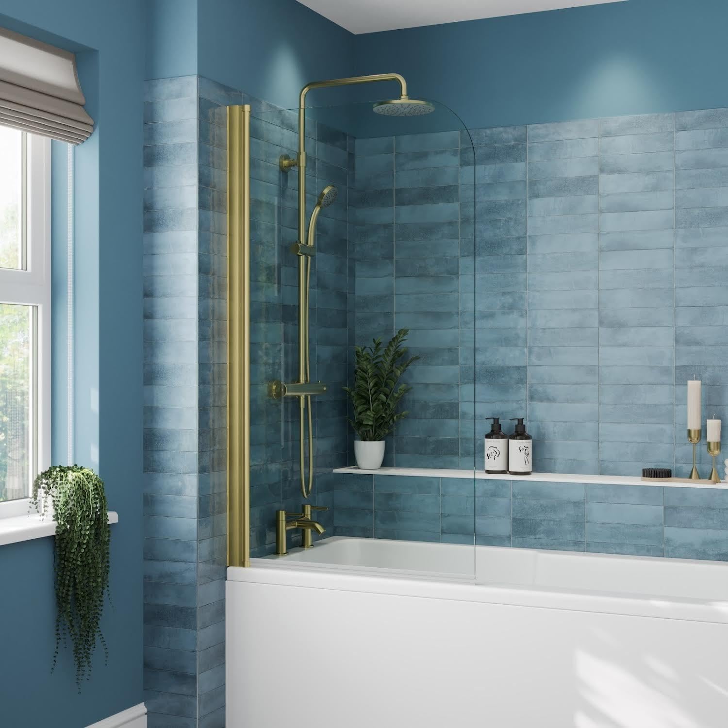 Paravan de cadă modern cu sticlă de siguranță călită de 6mm și profil din alamă periată. Design fără ramă, montaj reversibil și pivotare 90° în fiecare sens. Înălțime 1400mm pentru protecție eficientă împotriva stropilor și o baie mai curată.