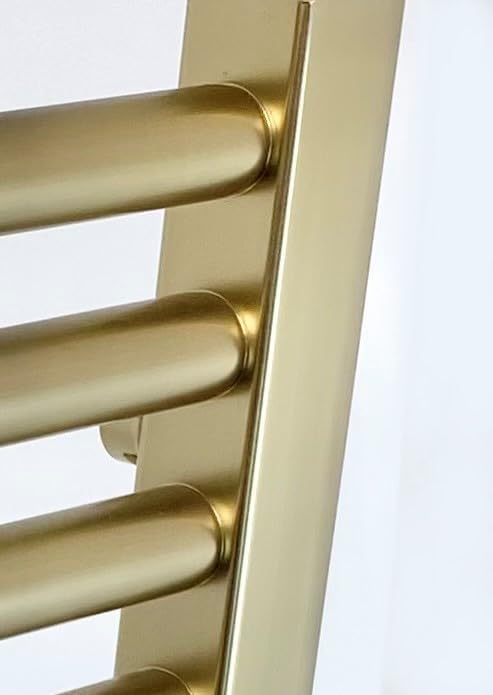 Radiator drept pentru prosoape, alamă periată, compatibil cu sisteme de încălzire centrală cu apă. Conexiuni ½ ” BSP. Aspect modern și elegant. Potrivit pentru băi contemporane. Disponibil cu robineți asortați, inclusiv modele termostatate, art deco și tradiționale.
