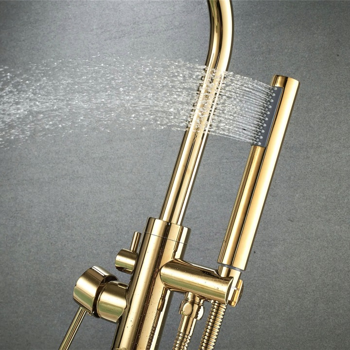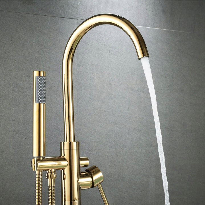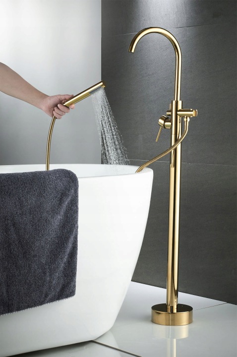 REA Lungo este o baterie de cadă cu montaj pe pardoseală, concepută pentru amenajări în care cada este poziționată independent. Modelul are finisaj auriu și este destinat utilizării ca baterie pentru cadă.