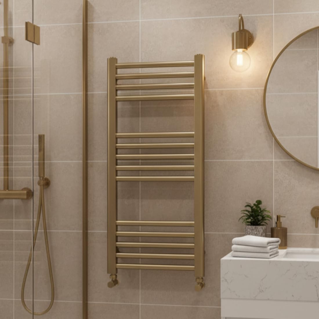 Robineții sunt realizați din alamă solidă și au finisaj de alamă periată. Oferă un aspect elegant oricărui radiator sau portprosop.