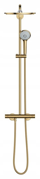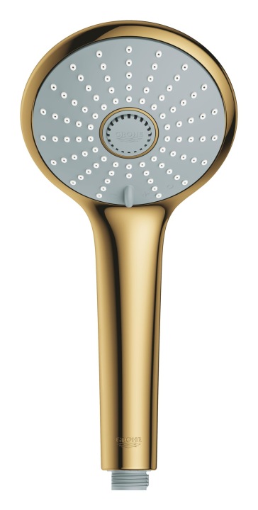 Tehnologia GROHE DreamSpray contribuie la distribuția uniformă a apei prin toate duzele, pentru un jet constant și plin. Duzele din silicon flexibil permit îndepărtarea ușoară a depunerilor de calcar prin simpla ștergere, datorită sistemului SpeedClean. Setul mai include blocare de siguranță la 38°C, limitator opțional la 43°C, mânere ergonomice MetalGrip, reducere continuă a debitului prin SprayDimmer, canal intern de apă și sistem TwistStop care previne răsucirea furtunului. Finisajul este în culoarea cool sunrise, cu aspect auriu lucios.