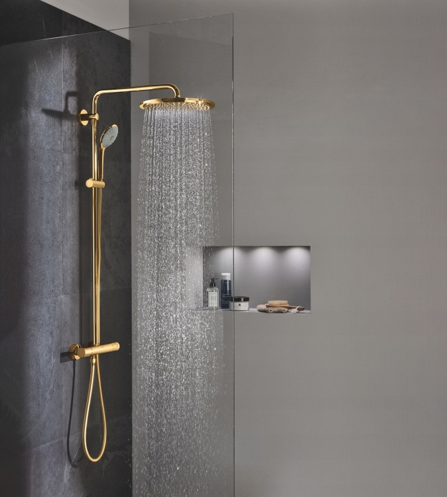 GROHE Euphoria System 310 este un set de duș aparent cu termostat, conceput pentru montaj pe perete, care oferă confort și siguranță în utilizarea zilnică. Cartușul termostatic GROHE TurboStat menține temperatura selectată a apei chiar și în cazul variațiilor bruște de presiune, iar protecția integrată împiedică pornirea accidentală a apei prea fierbinți.