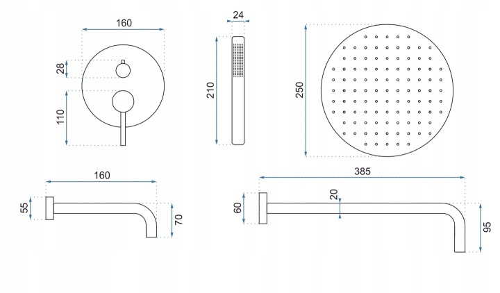 Acest set este destinat montajului încastrat și include baterie pentru duș/cadă, pălărie de duș Ultra Slim 25 x 25 cm, braț de 38,5 cm, pară de duș de 21 cm, furtun de 150 cm, pipă și box pentru montaj facil. Bateria este echipată cu cap ceramic, iar grosimea pălăriei de duș este de 2 mm. Masca bateriei are, de asemenea, grosimea de 2 mm.