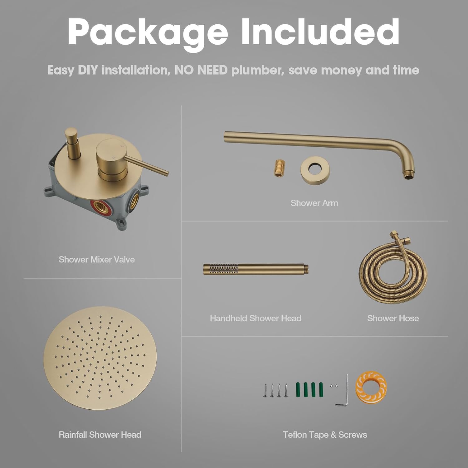 Setul include pară de duș handheld single mode din alamă, furtun de duș SUS de 150 cm, racord de alimentare cu apă și suport de duș, toate într-un singur kit. Toate racordurile sunt standard 1/2 pentru montaj simplu. Presiune minimă recomandată 0,5 bar, ideal 1 bar pentru performanță optimă.