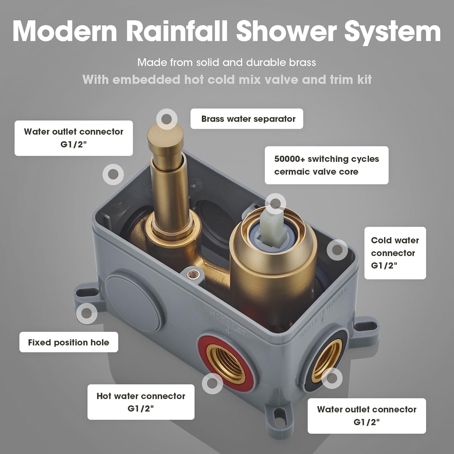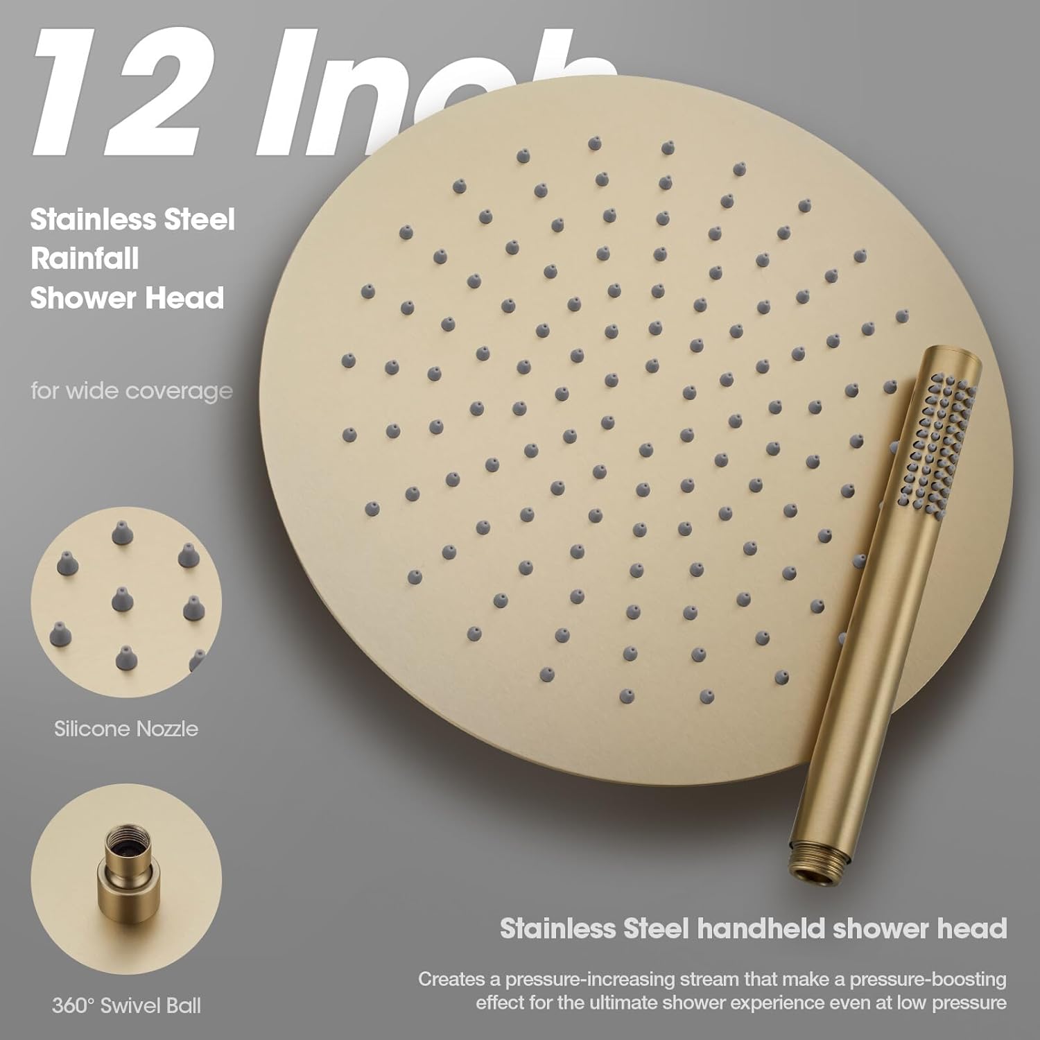 - Cap de duș rainfall rotund de 12 inch (≈ 30,5 cm)