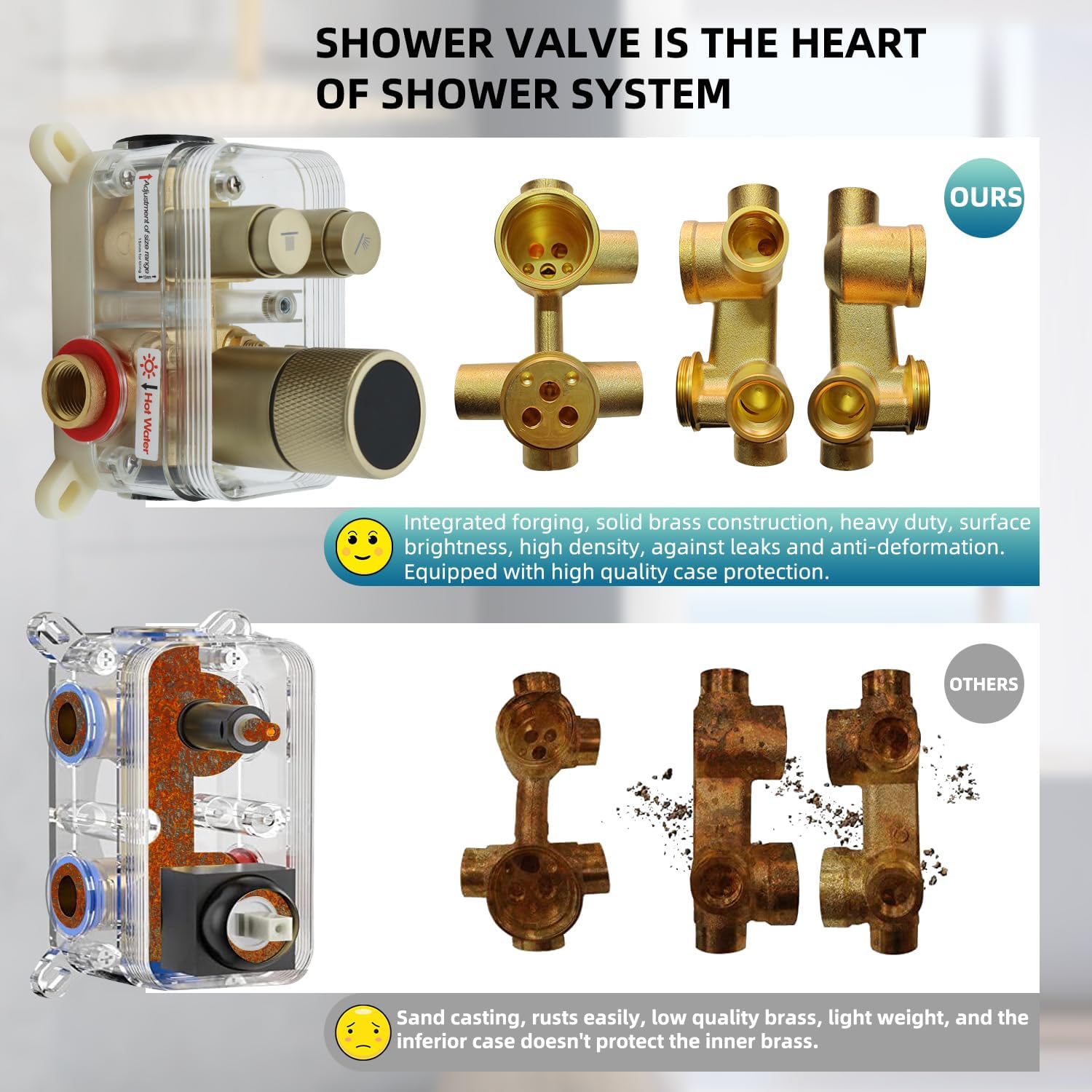 Componentele din alamă și oțel inoxidabil asigură rezistență la coroziune și durabilitate. Suprafața este ușor de curățat și menține un aspect îngrijit în baie.