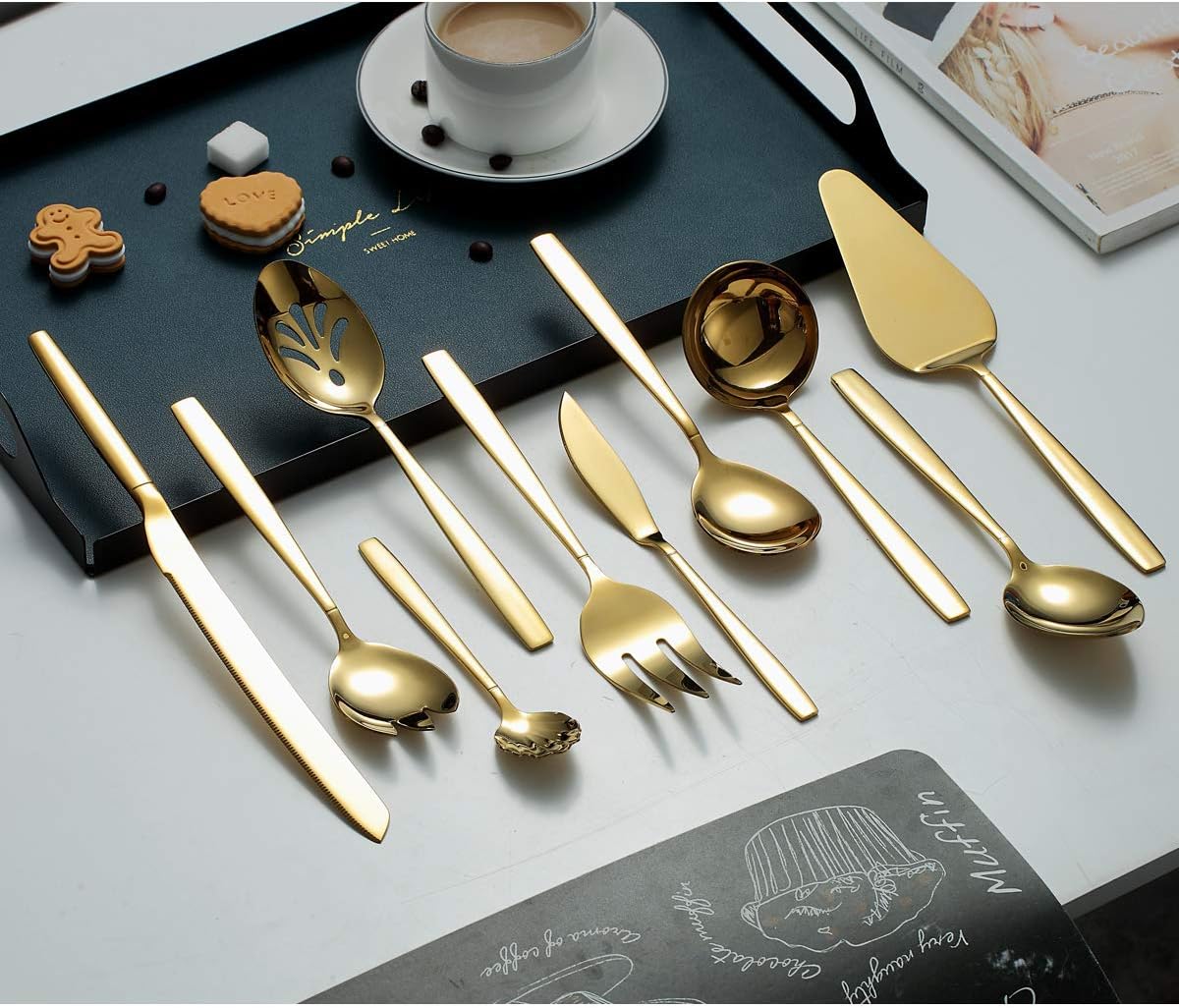 Set de servire din inox cu finisaj Gold Titanium. Include piese esențiale pentru servirea elegantă a preparatelor.