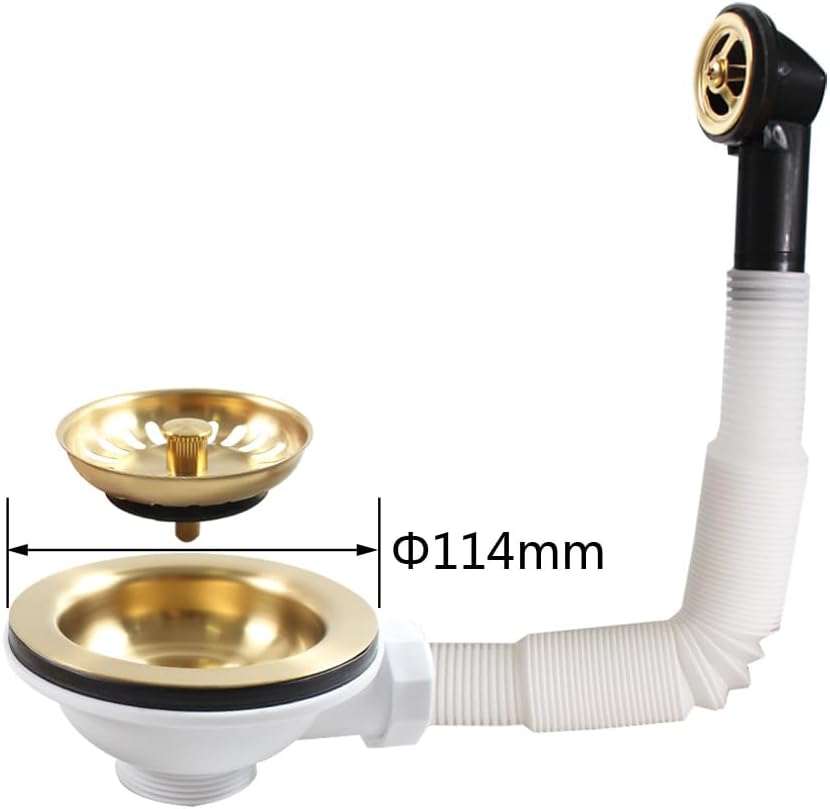 Sită de scurgere Talea din oțel inoxidabil SUS304, finisaj brushed gold. Diametru 114 mm, potrivită pentru orificii de 88-95 mm. Etanșare bună, ideală pentru chiuvete de bucătărie cu preaplin.