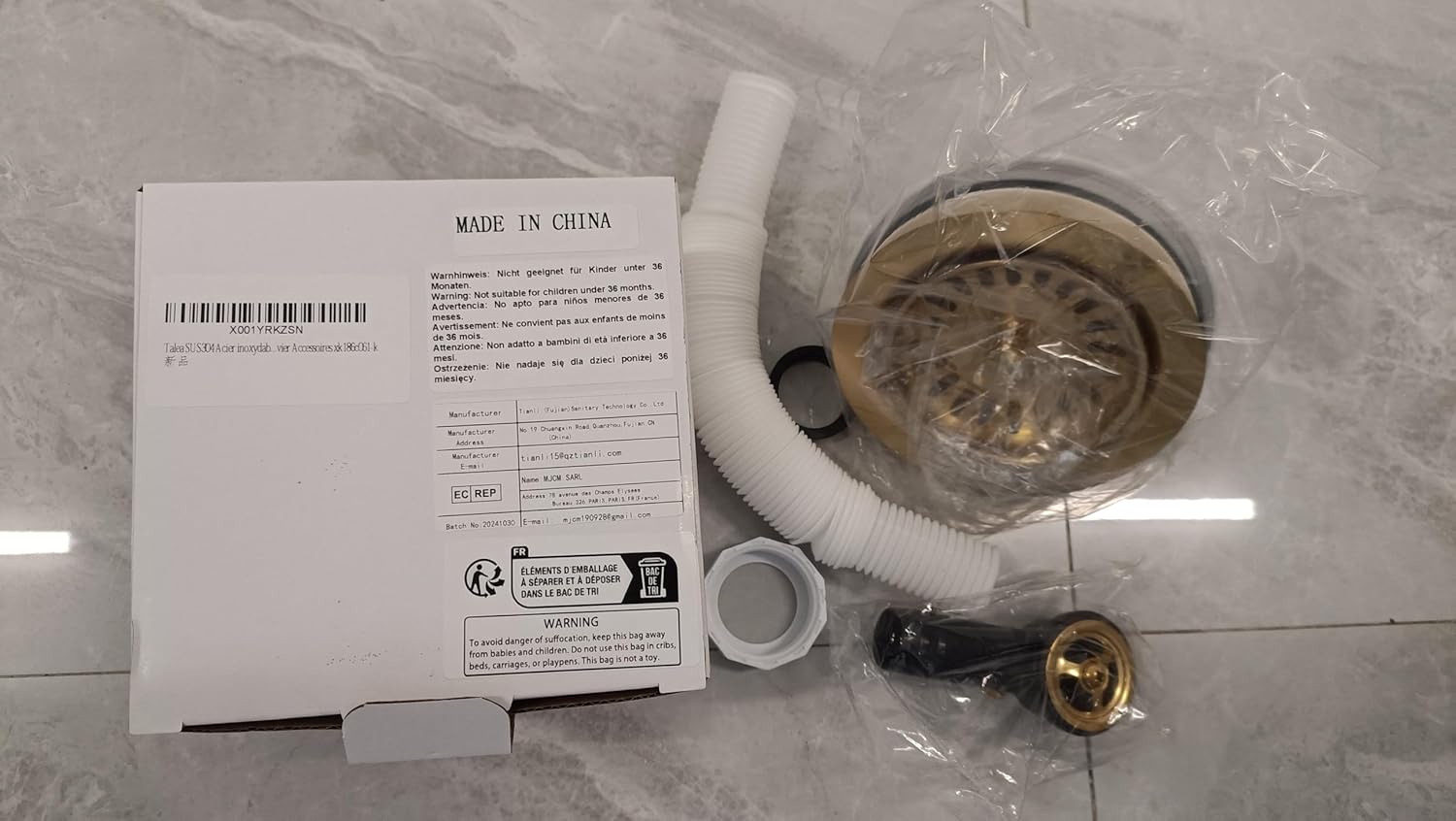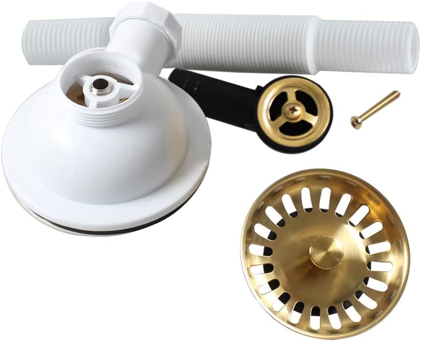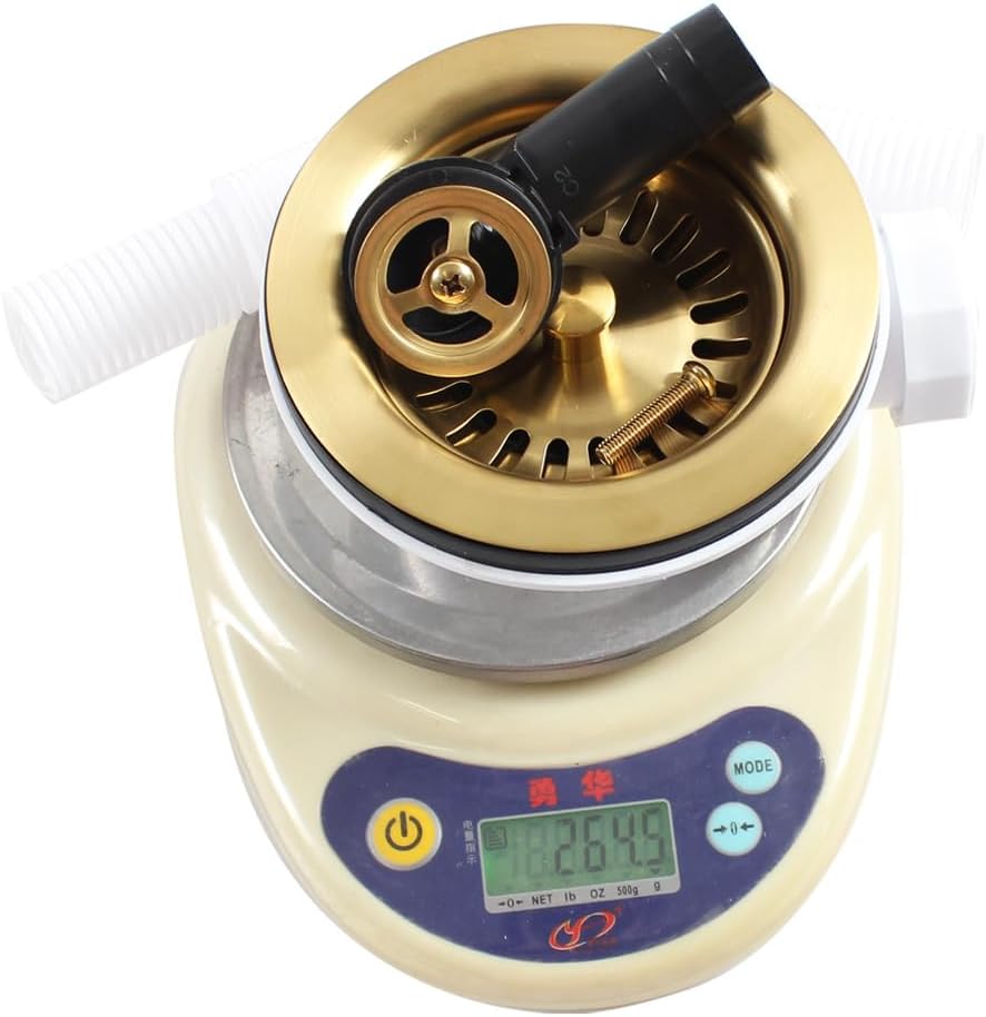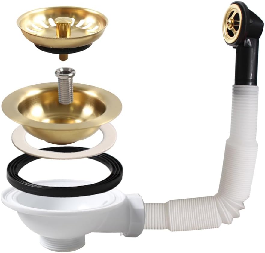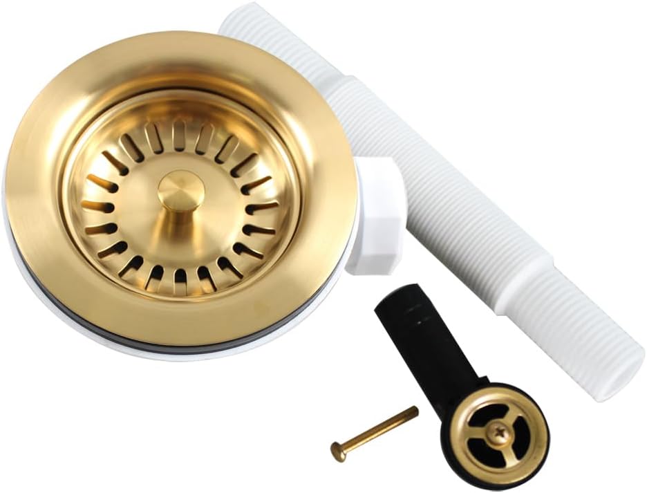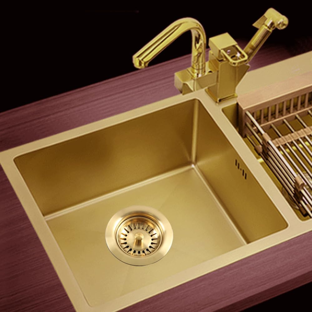 Sită de scurgere Talea din oțel inoxidabil SUS304, finisaj brushed gold. Potrivită pentru chiuvete de bucătărie cu preaplin.
