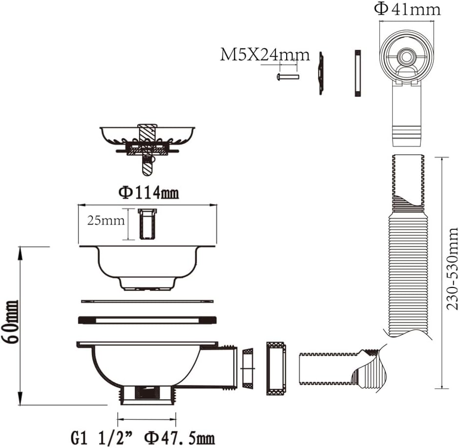 Diametrul superior al sitei este de 114 mm. Se potrivește pentru chiuvete cu diametrul orificiului de montaj între 88 și 95 mm.