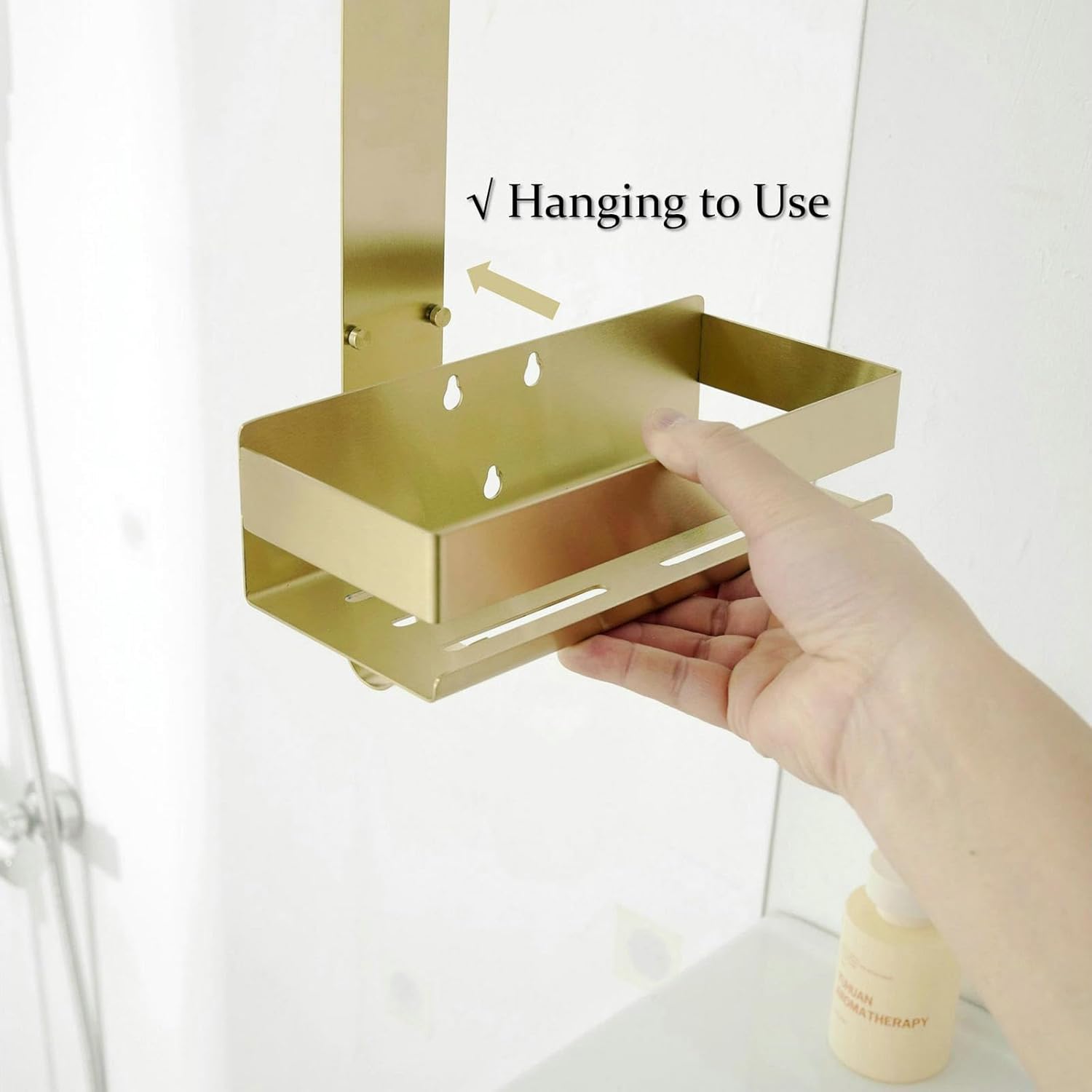 Organizatorul de duș se agață peste ușă și nu necesită găurire. Este ideal pentru depozitarea ordonată a produselor de baie.