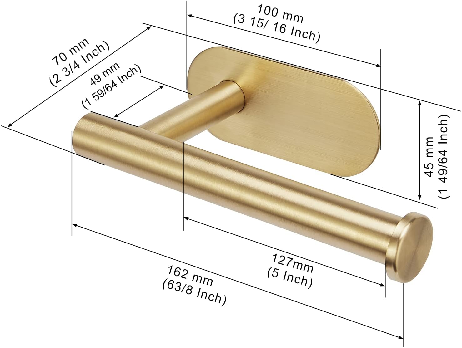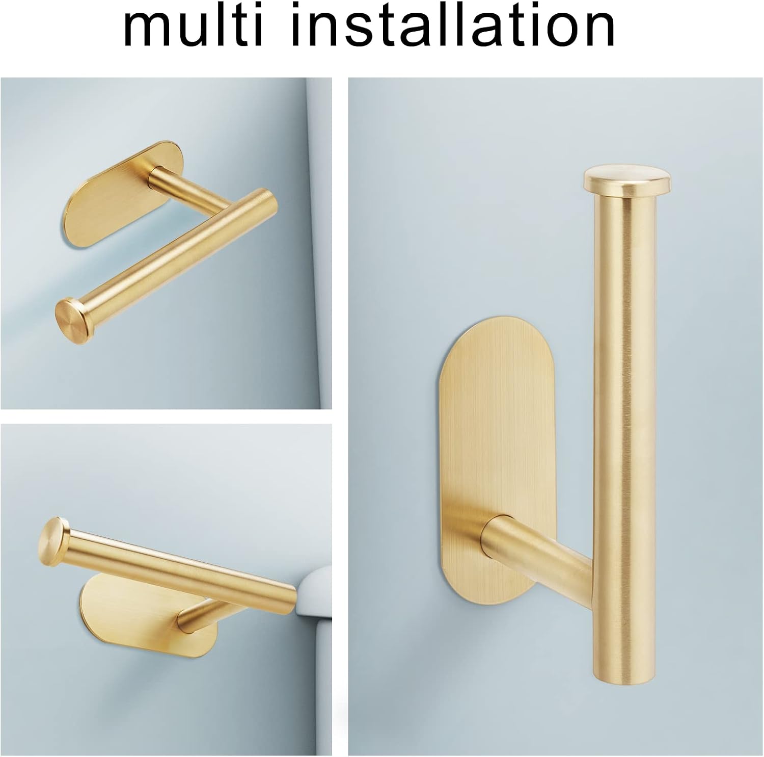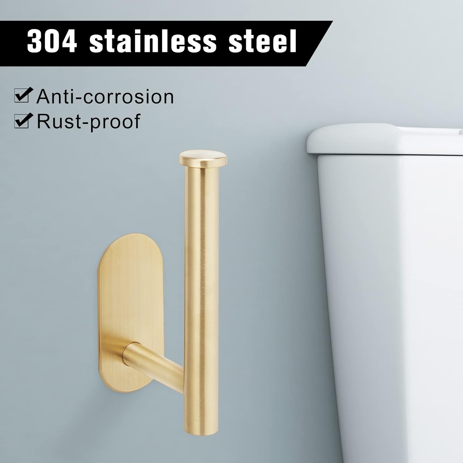 Suport autoadeziv pentru hârtie igienică, cu bază 4,3*2 inch (≈ 10,9*5,1 cm) și capacitate 6 lb (≈ 2,72 kg). Design modern, tija cilindrică permite schimbarea rapidă a rolei. Se montează fără găurire pe suprafețe netede, precum faianță, sticlă, metal, lemn sau plastic.