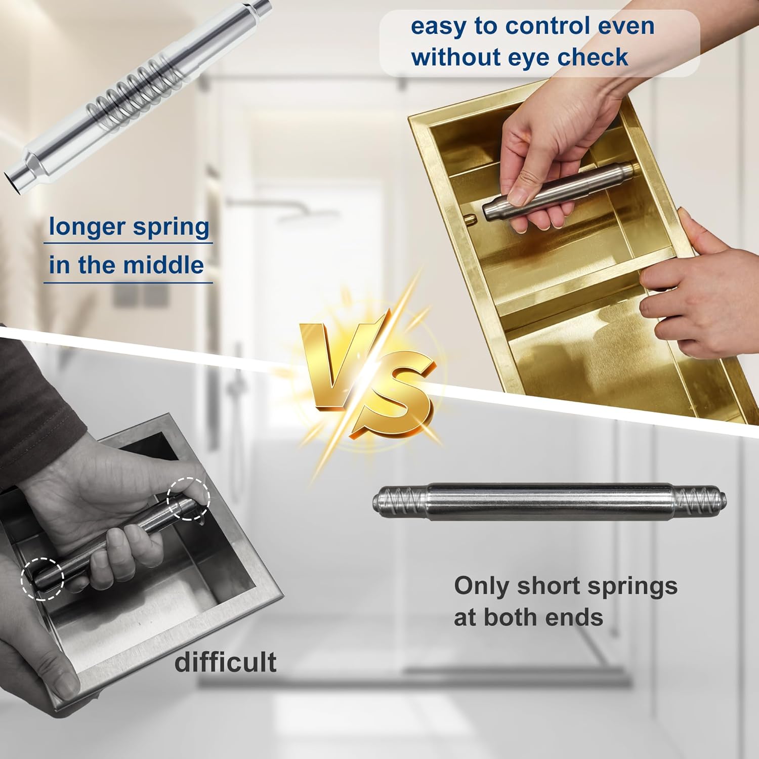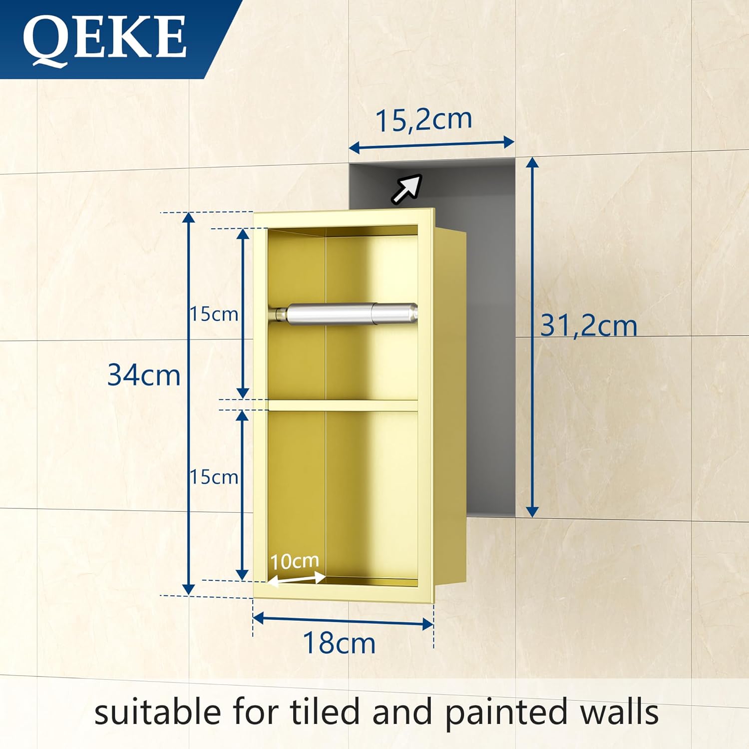 Suportul de hârtie igienică Qeke este din oțel inoxidabil SUS304, rezistent la coroziune. Designul îngropat economisește spațiu și oferă depozitare. Partea inferioară poate fi folosită ca suport pentru picior. Ideal pentru băi mici și spații umede. Instalare ușoară, în câțiva pași.