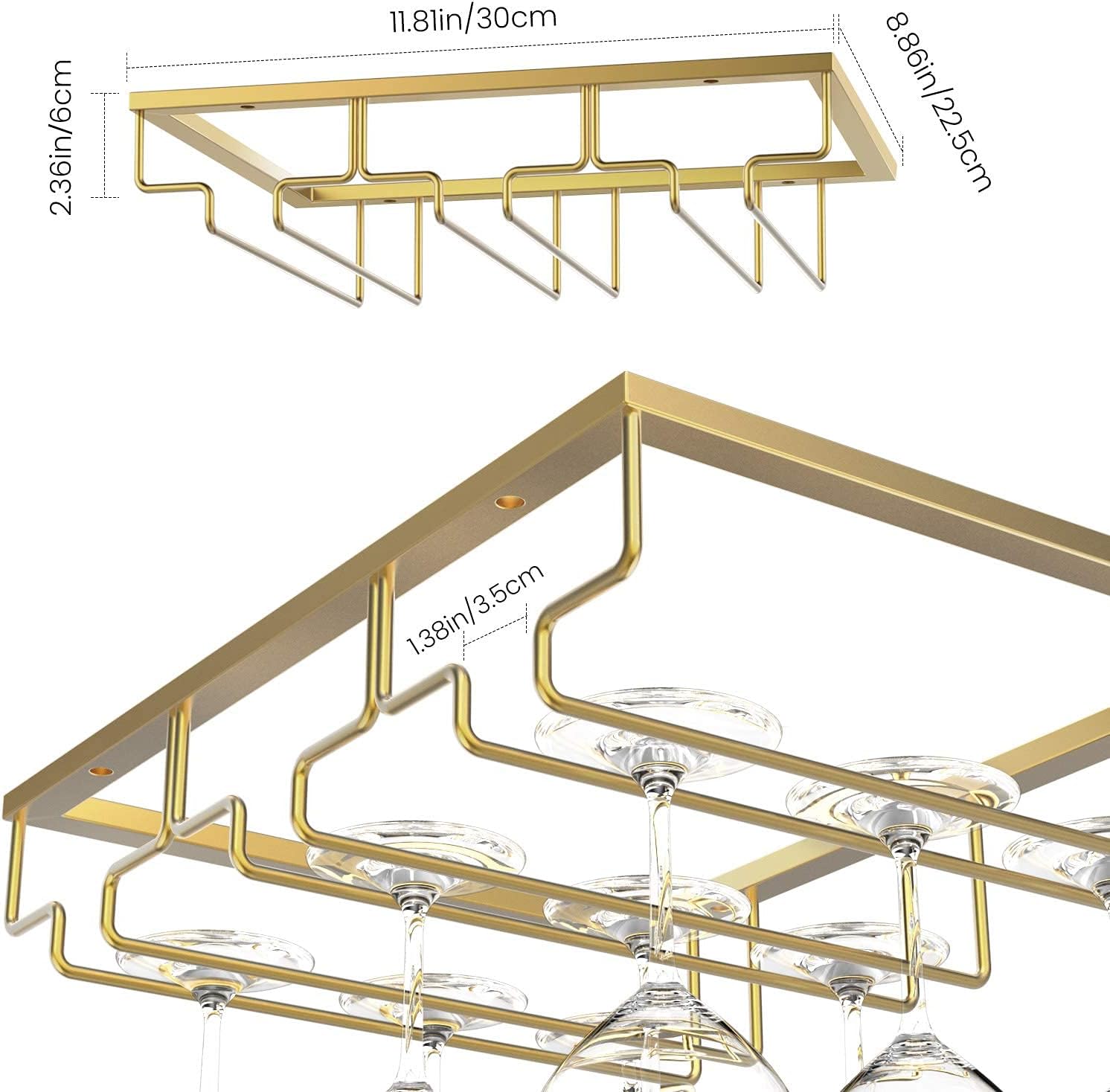 Suport din fier pentru pahare de vin, rezistent la deformare. Se montează ușor sub dulap. Economisește spațiu și oferă un aspect modern bucătăriei sau mini barului. Dimensiuni: 11.81 inch (≈ 30,0 cm) x 8.86 inch (≈ 22,5 cm) x 2.36 inch (≈ 6,0 cm).