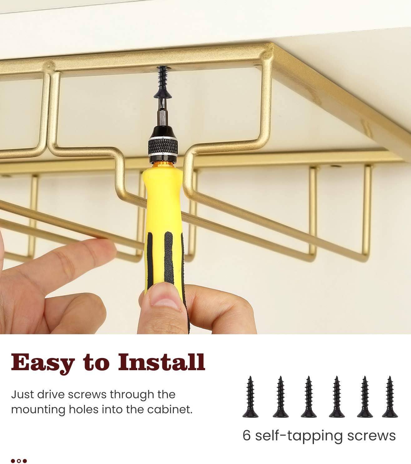 Organizează elegant paharele de vin sub dulap și eliberează spațiul din bucătărie sau mini bar. Suportul oferă depozitare comodă și acces rapid la pahare.