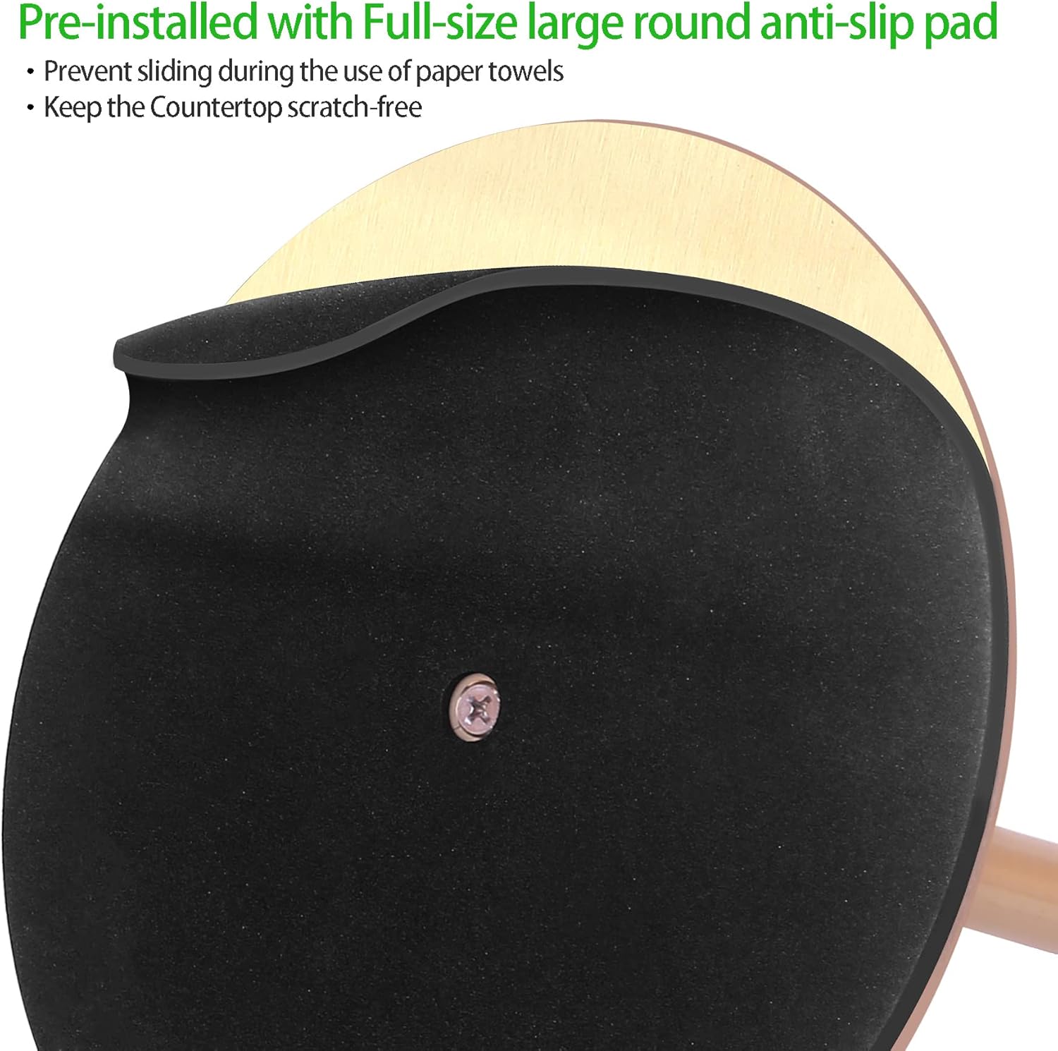 Suport auriu pentru prosoape de hârtie, din oțel inoxidabil premium. Bază cu pad antiderapant mare, rotund, care protejează blatul. Capăt superior pentru transport ușor. Potrivit pentru role standard și mari, în bucătărie sau baie.