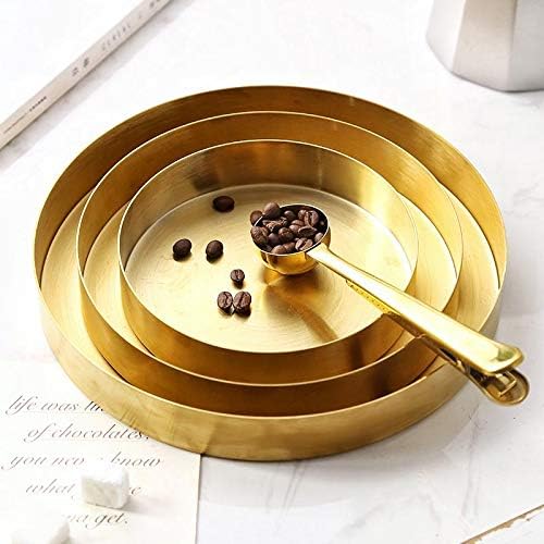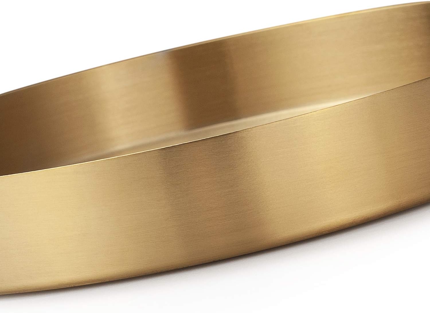 Tavă decorativă Gold Round Tray din oțel inoxidabil, cu finisaj auriu lucios. Ideală pentru bijuterii, cosmetice, parfumuri, lumânări sau chei. Potrivită pentru hol, măsuță de cafea, comodă sau masă de toaletă. Diametru 14 cm, 18 cm sau 22 cm, înălțime 3 cm.