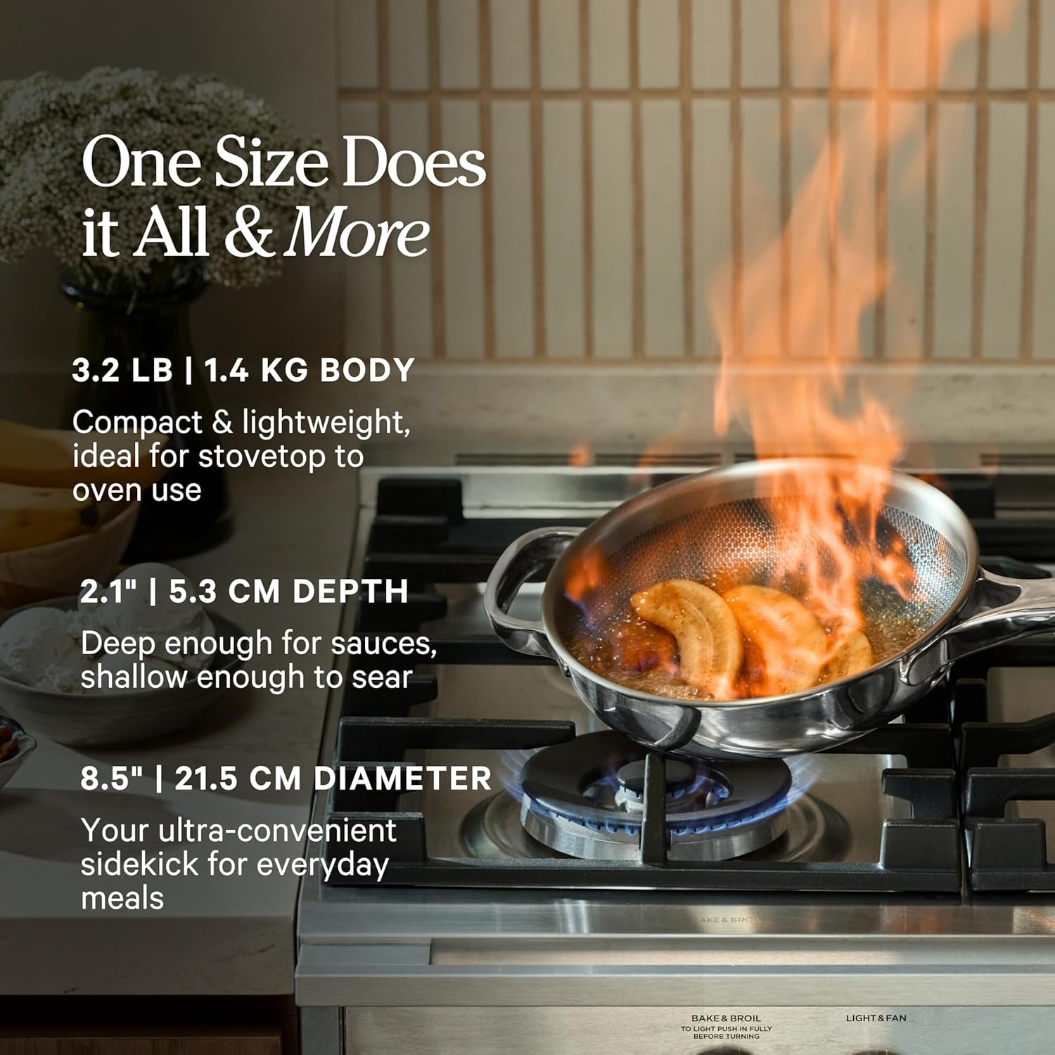 Capacitatea de 1,4 L și diametrul de 22 cm o fac ideală pentru bucătării mici, porții individuale sau garnituri. Designul compact economisește spațiu.
