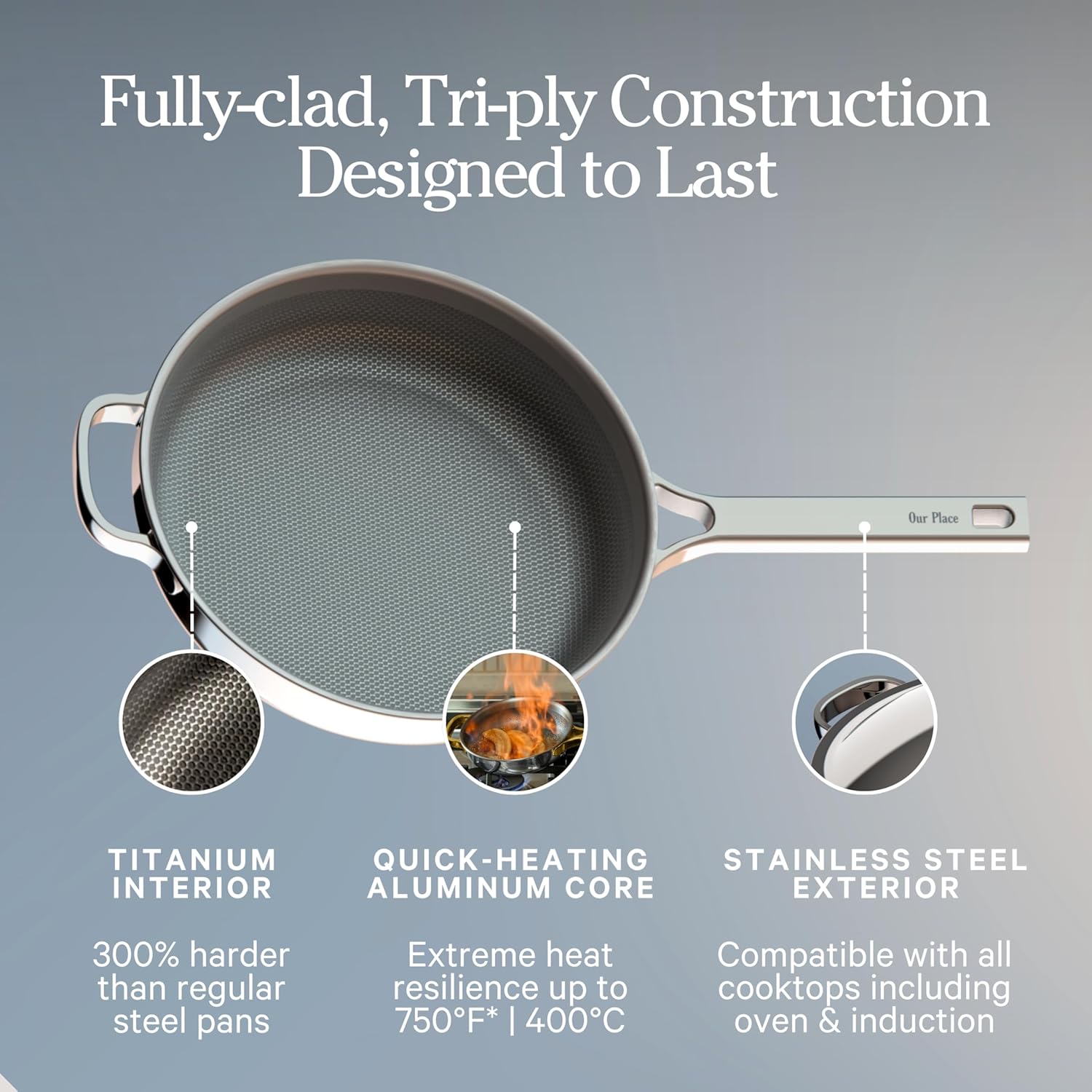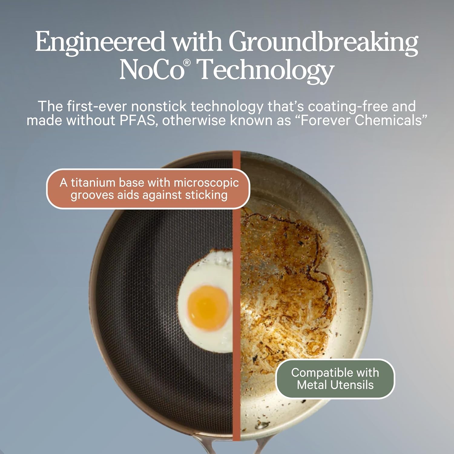 - Interior din titanium fără coating, fără PFAS